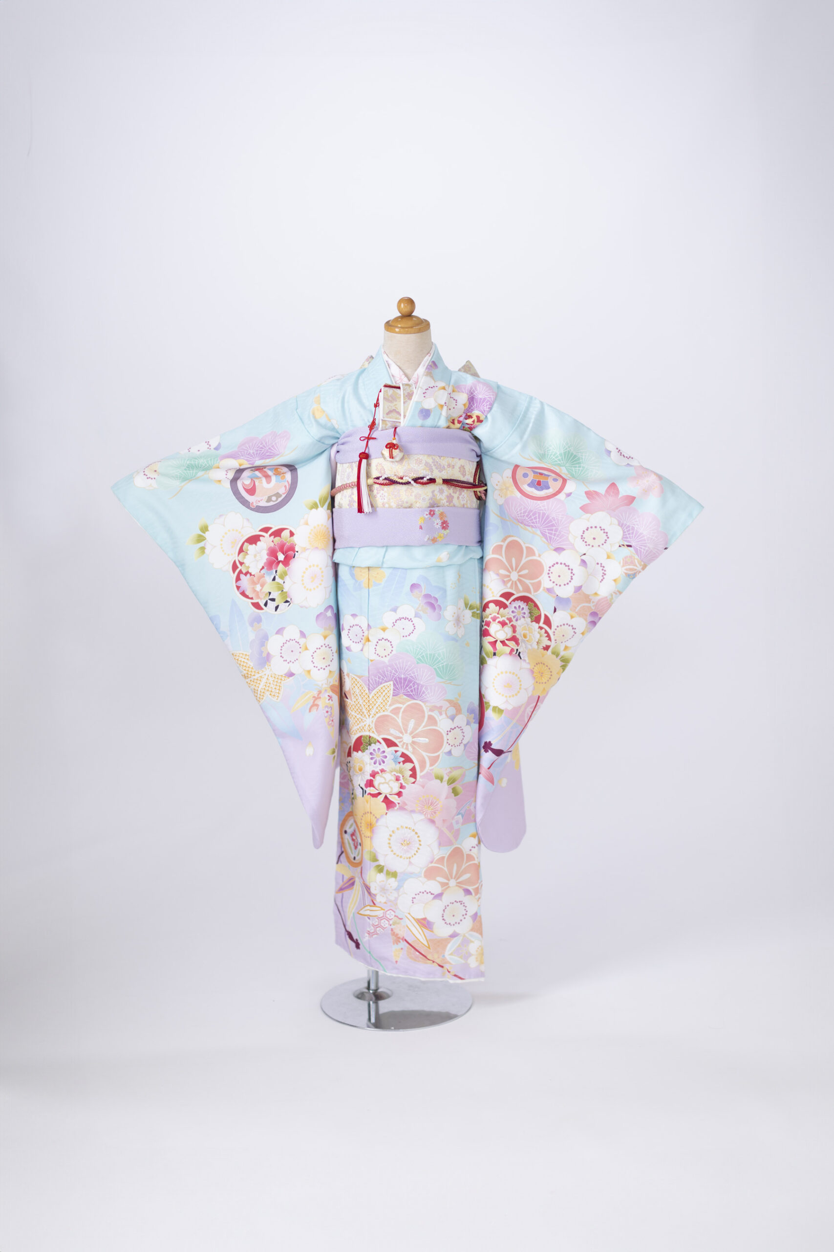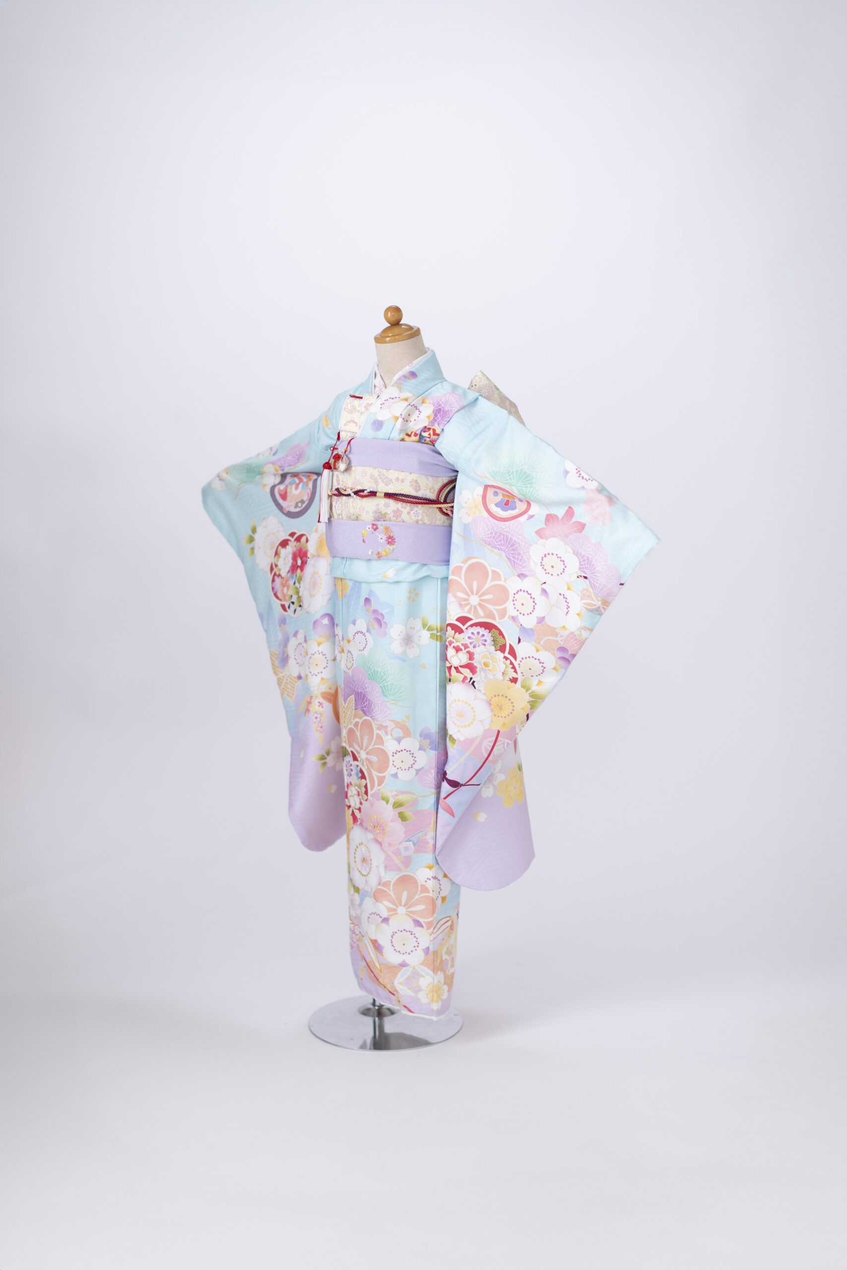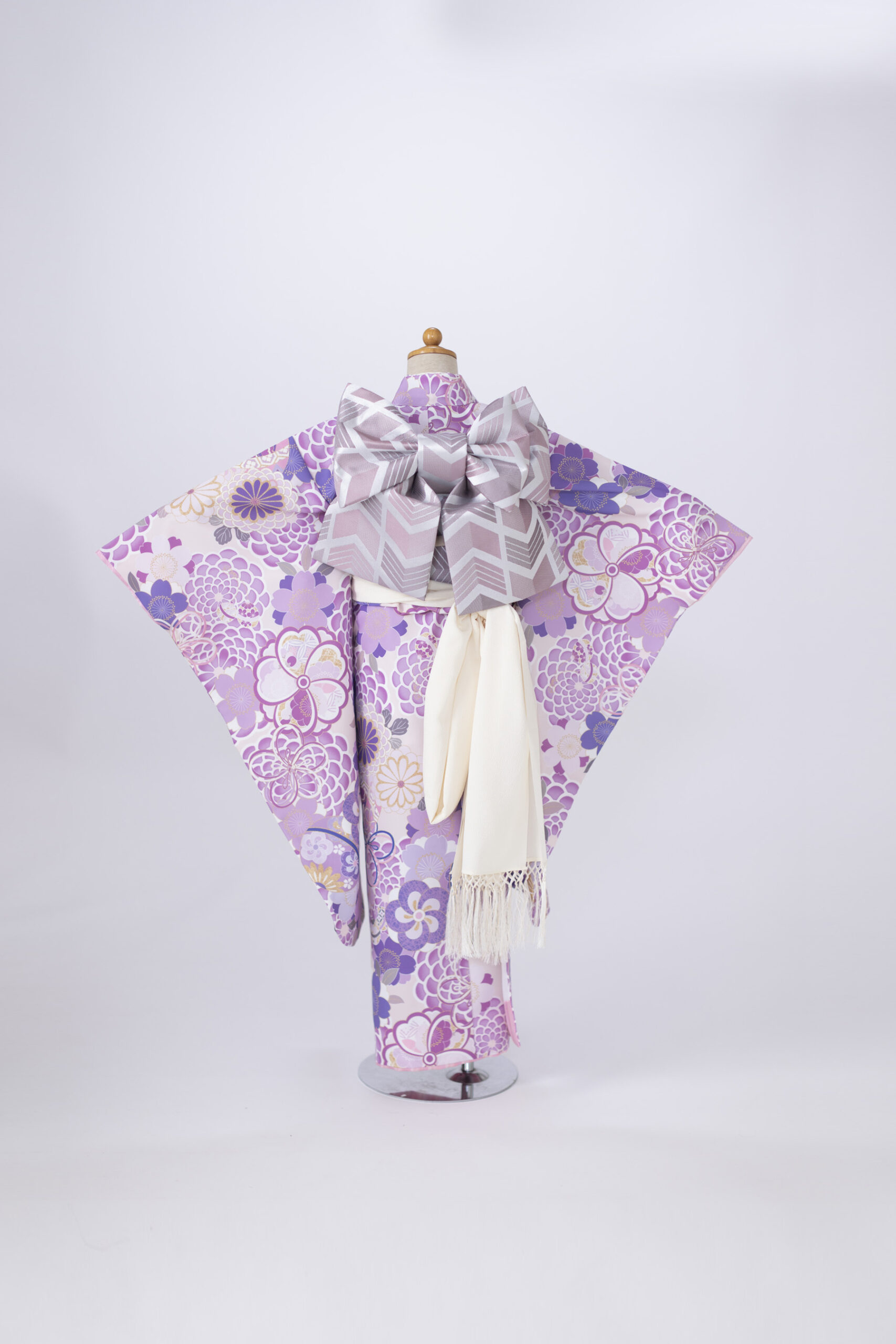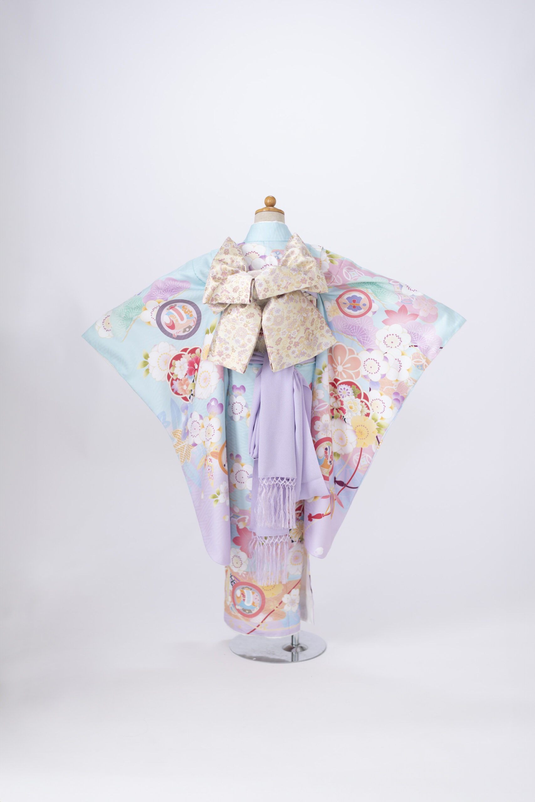 ※着物と帯の組み合わせは固定です。それ以外の小物類(帯揚げ、はこせこ、帯締め、しごき)は紛失、破損等により変更する場合がございます。予めご了承ください。