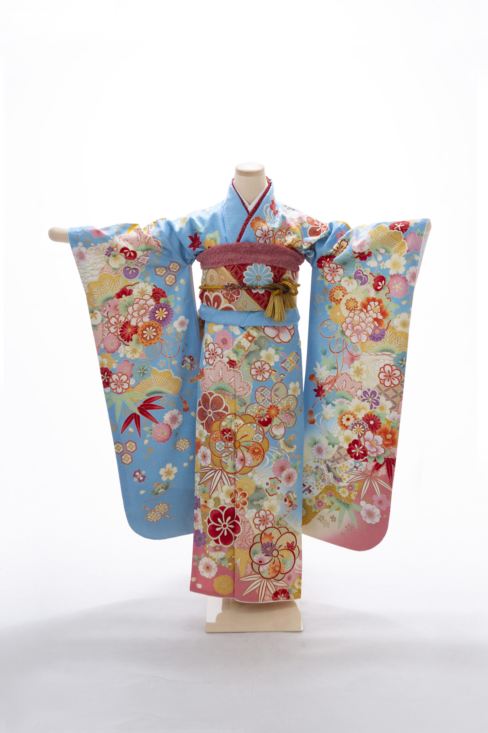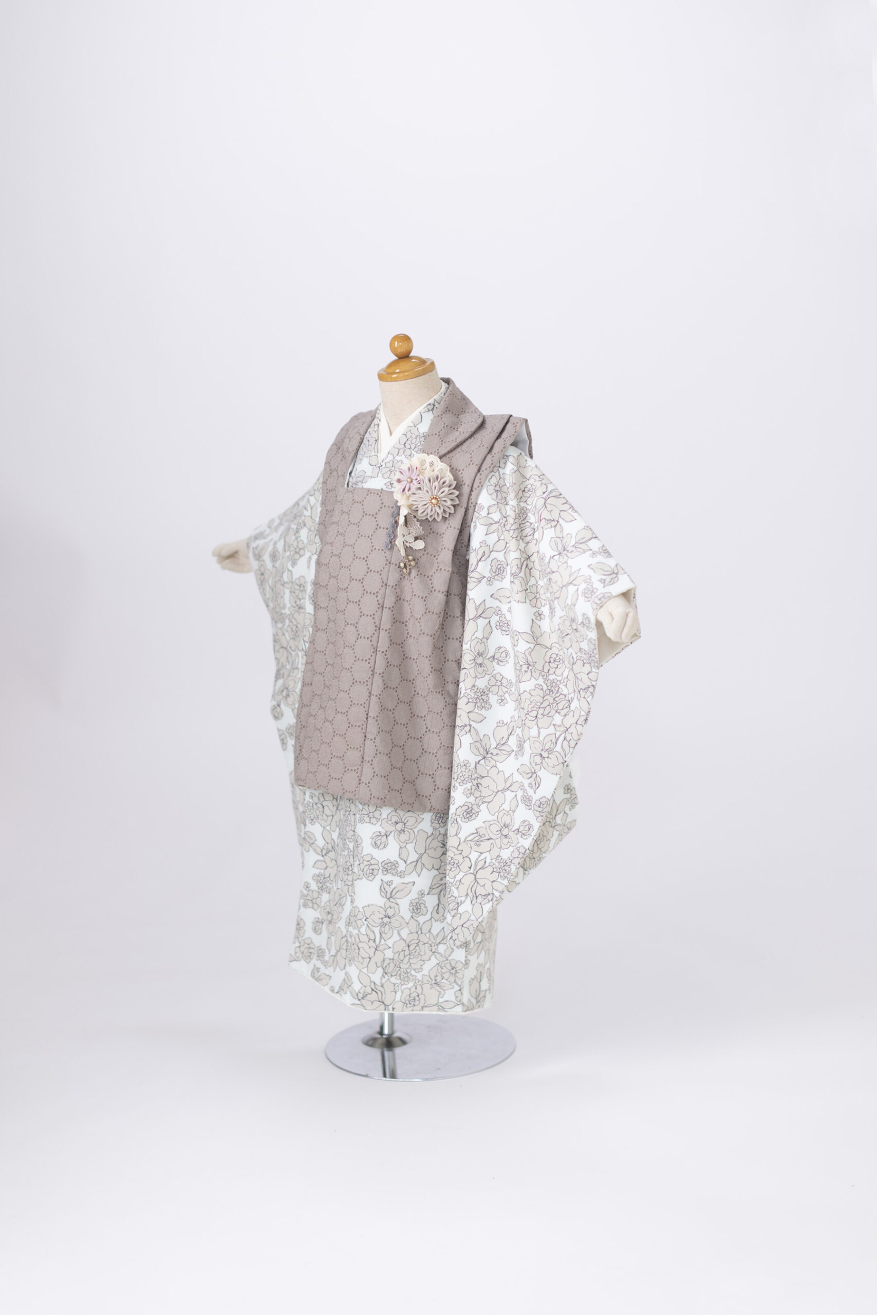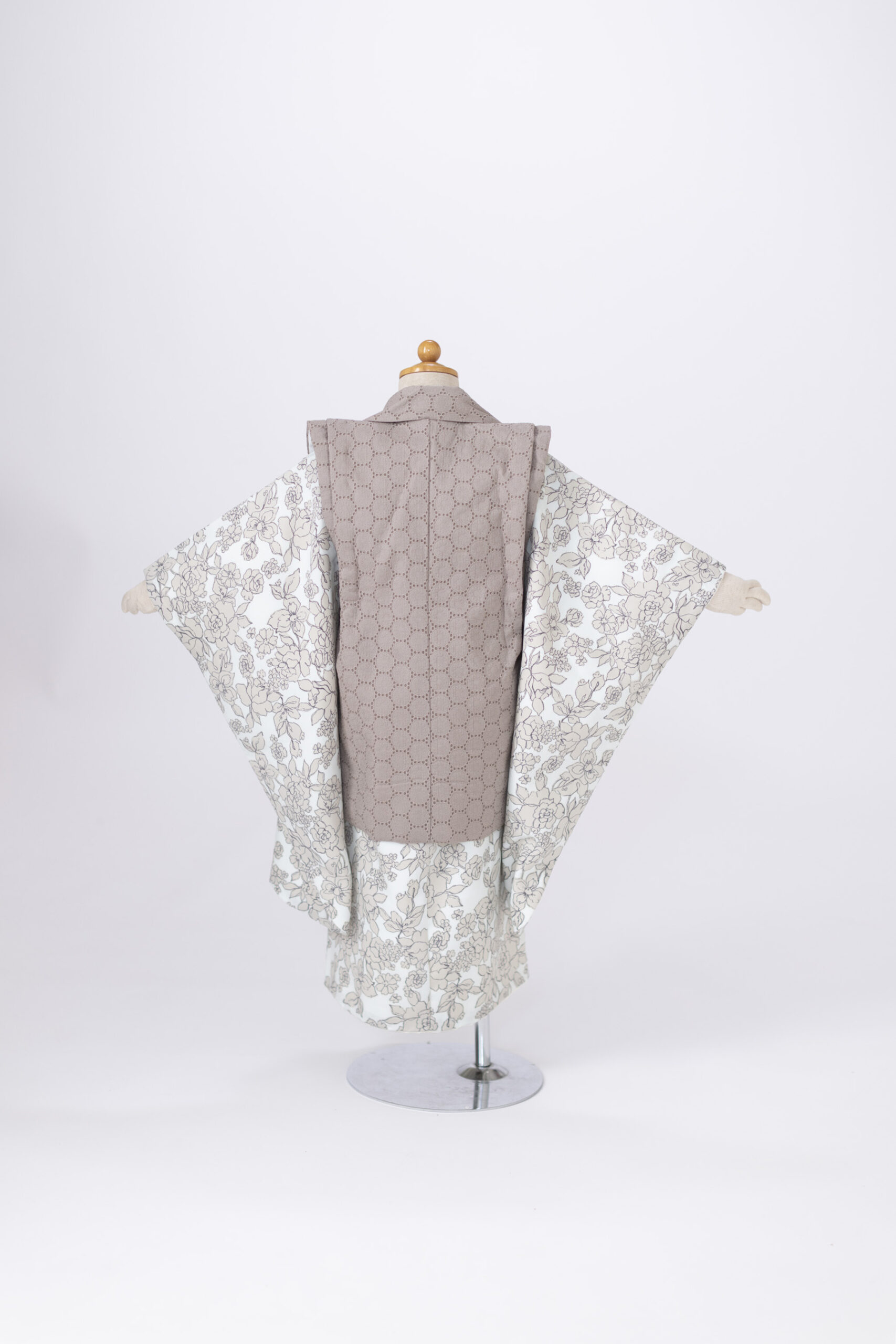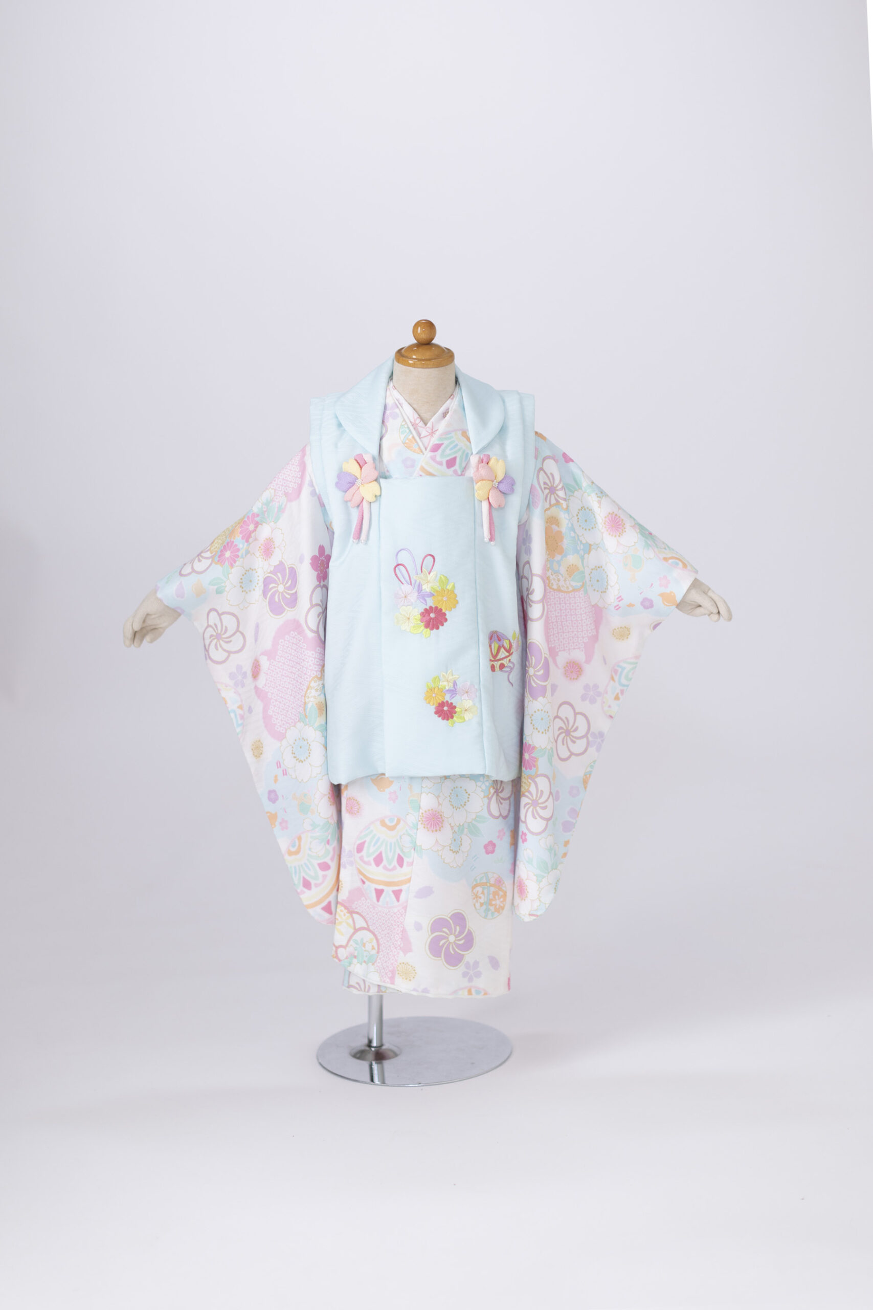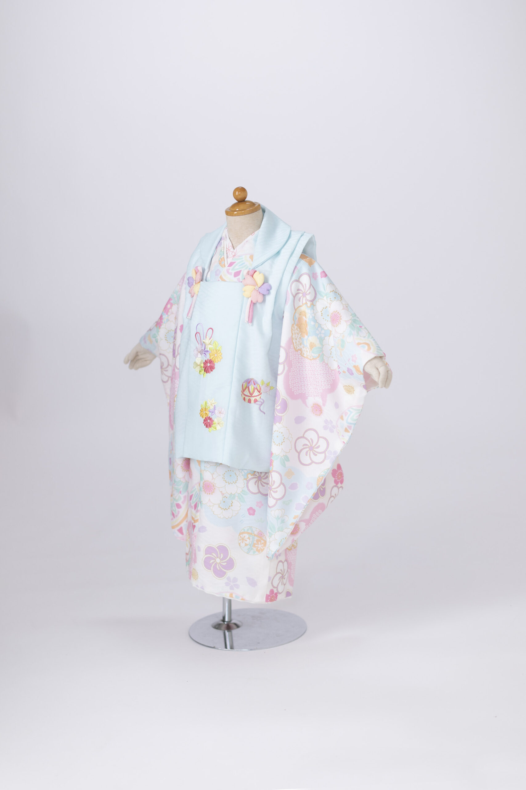 ※着物と帯の組み合わせは固定です。それ以外の小物類(帯揚げ、はこせこ、帯締め、しごき)は紛失、破損等により変更する場合がございます。予めご了承ください。