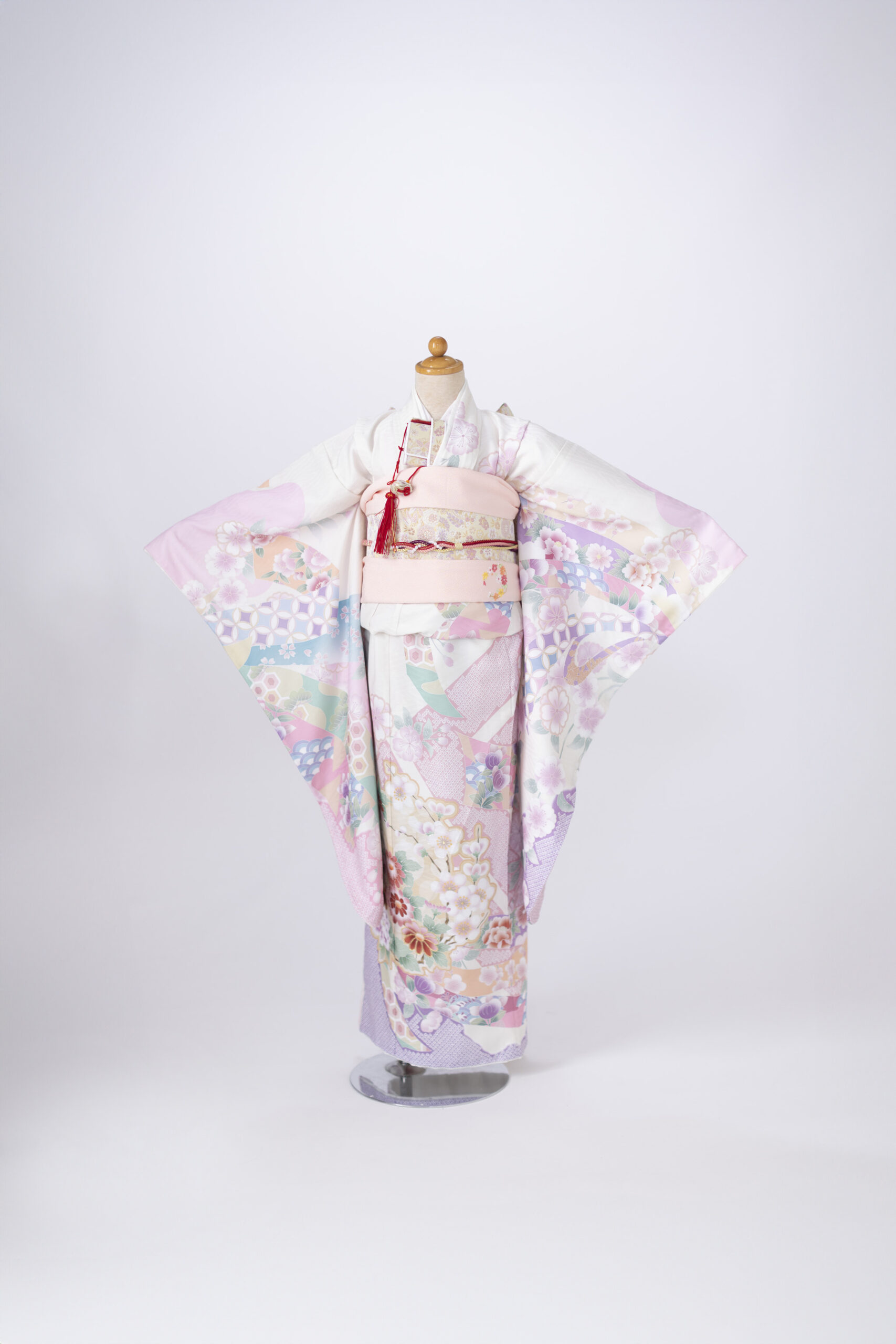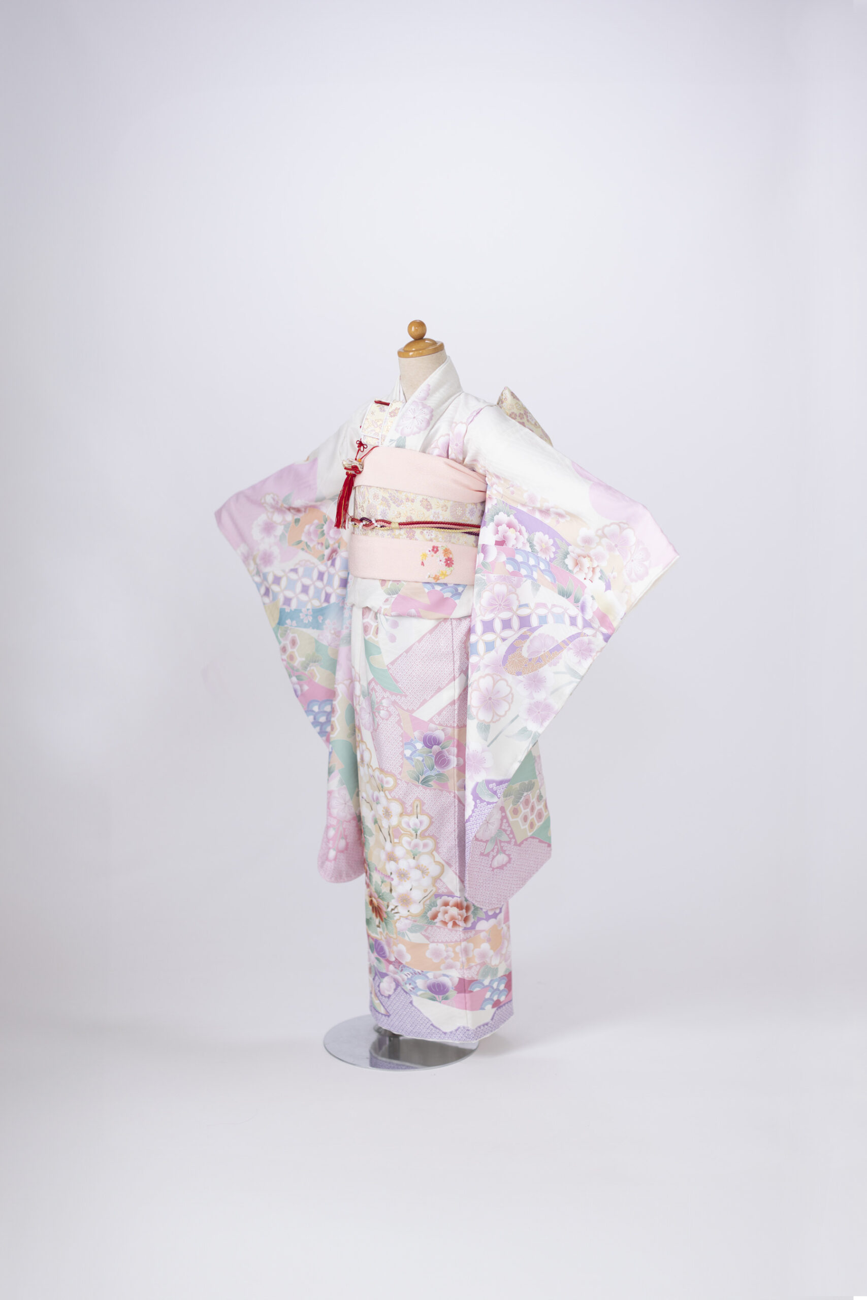 【着物品番】fk7-009/7歳着物/アイボリーピンク/式部浪漫